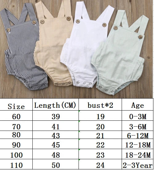 11Color Newborn Infant Baby Boy Girl Bodysuit Summer Button Jumpsuit Striped Casual Sleeveless Backless Solid Outfits Clothes