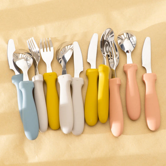 Newborn Stainless Steel Children's Tableware Spoon Fork Knife Set Dessert Spoon For Kids Baby Gadgets Feeding Cutlery Baby Stuff