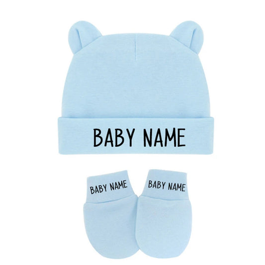 Personalized Newborn Baby Beanie Cute Baby Name Hat and Gloves with Ears Cotton Stretch Boys Girls Warm Hat Gloves Shower Gift